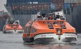 Warga Negara Indonesia (WNI) yang menjadi anak buah kapal Pesiar MV Carnival Splendor berada di dalam tender boat saat tiba di Pelabuhan JICT, Tanjung Priok, Jakarta, Kamis (30/4/2020). Sebelum dibawa menuju hotel untuk dilakukan isolasi mandiri selama satu minggu, 375 WNI tersebut terlebih dahulu menjalani rapid test (FOTO : ANTARA/NOVA WAHYUDI)