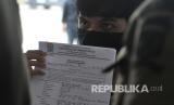 REPUBLIKA.CO.ID, PALEMBANG -- Salah satu warga yang terjaring dalam razia warga tanpa masker menunjukkan berkas berita acara pelanggaran usai penertiban di Asrama Haji Palembang Sumsel, Kamis (30/4/2020).