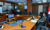 Kepala Staf Angkatan Udara (Kasau) Marsekal TNI Yuyu Sutisna melakukan telekonferensi dengan para pejabat Angkatan Udara dari 20 negara di Asia Pasifikdari Gedung Raden Suryadi Suryadarma Cilangkap, Jakarta Timur, Kamis (30/4/2020). (FOTO : dok. Dispen TNI AU)