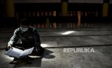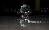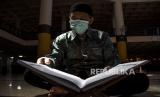 Pengurus Dewan Kemakmuran Masjid (DKM) membaca Al Quran di Masjid Raya Bandung yang ditutup di Jalan Dalem Kaum, Kota Bandung, Kamis (30/4). Pada bulan Ramadan, selain berpuasa umat islam juga memperbanyak kegiatan ibadah seperti tadarus atau membaca Al quran guna menambah amalan dam memohon ampunan dari Allah SWT (FOTO : ABDAN SYAKURA/REPUBLIKA)