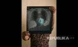 Simon Nainggolan (50) menunjukkan hasil rontgen paru-paru miliknya di Jakarta. (FOTO : Nova Wahyudi)