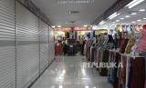 Suasana sejumlah toko penjual busana muslim di Pasar Beringharjo, DI Yogyakarta, Jumat (1/5). Menurut pedagang busana muslim di pasar tersebut, penjualan busana muslim pada bulan Ramadhan tahun ini sepi pembeli dan mengalami penurunan hingga 50 persen dari tahun lalu akibat imbauan untuk tetap tinggal di rumah saat pandemi COVID-19 (FOTO : ANTARA/Hendra Nurdiyansyah)