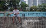Kegiatan menunggu berbuka puasa ini bermacam-macam rupanya. Termasuk apa yang dilakukan penggemar burung merpati di Banjir Kanal Barat, Petamburan ini.