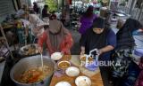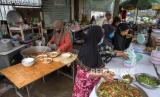 Makanan dalam rantang plastik dibagikan kepada 150 warga muslim sekitar masjid. .