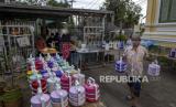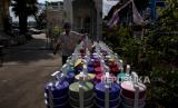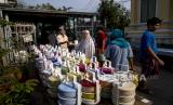 Umat Muslim mengumpulkan rantang makanan di Masjid Bang Aw, Bangkok, Thailand, Kamis (30/4). Selama Ramadhan, sukarelawan Masjid Bang Aw memasak makanan untuk 150 keluarga di lingkungan itu setiap hari. (FOTO : AP / Gemunu Amarasinghe)