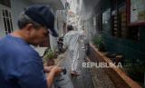 Komunitas yang tergabung dalam Jurnalis Jelajah Indonesia melakukan kerja bakti membersihkan mushola di kawasan Kota Bambu Utara, Jakarta, Sabtu (2/5). Komunitas tersebut menggelar program marbot keliling yang akan membersihkan sebanyak 30 masjid dan mushola di kawasan Jabodetabek sebagai upaya menjaga tempat ibadah dari penyebaran pandemi COVID-19 (FOTO : Republika/Thoudy Badai)