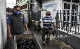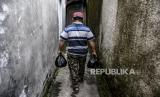 Warga yang tergabung dalam Satuan Tugas Siaga Covid-19 RW 11 mendistribusikan paket bantuan kepada warga di kawasan Jalan Sekepanjang, Kota Bandung, Ahad (3/5). Satuan Tugas Siaga Covid-19 RW 11 mendistribusikan sedikitnya 100 paket bantuan yang terdiri dari beras, minyak, telur, mie instan dan sabun hasil sumbangan para donatur dan warga sekitar kepada warga yang terdampak virus Corona (Covid-19) di wilayah sekitar (FOTO : ABDAN SYAKURA/REPUBLIKA)