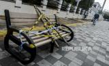 Salah satunya dengan menghalangi orang duduk di Bangku-bangku trotoar yang ada di pinggir jalan. Bangku tersebut disegel garis pembatas dan ditutupi bambu.