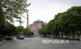 Kawasan Masjid Sultanahmet dan Hagia Sophia terlihat kosong di masa pandemi Covid-19 di Istanbul, Turki pada 3 Mei 2020.