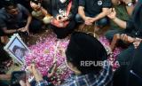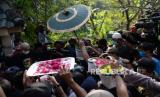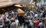 Pelepepasan jenzah penyanyi campur sari Didi Kempot menuju TPU Jatisari, Kendal, Ngawi, Jawa Timur, Selasa (5/5). Didi Kempot meninggal di RS Kasih Ibu, Solo dan jenazah dimakamkan di TPU Jatisari, Mejasem, Ngawi (FOTO : Wihdan Hidayat/ Republika)