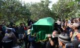Prosesi pemakaman penyanyi campur sari Didi Kempot di TPU Jatisari, Kendal, Ngawi, Jawa Timur, Selasa (5/5). Didi Kempot meninggal di RS Kasih Ibu, Solo dan jenazah dimakamkan di TPU Jatisari, Mejasem, Ngawi (FOTO : Wihdan Hidayat/ Republika)