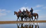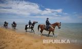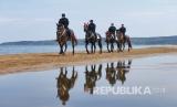 REPUBLIKA.CO.ID, ISTANBUL -- Pasukan jandarma berkuda melakukan patroli di pantai distrik Sariyer selama 3 hari penerapan pembatasan sosial berskala besar (PSBB) di 31 provinsi untuk membendung penyebaran virus corona (Covid-19) di Istanbul, Turki, Selasa (2/5).