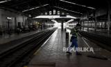 Petugas beraktivitas di Stasiun Bandung, Kota Bandung, Kamis (7/5). Menteri Perhubungan Budi Karya Sumadi menyatakan, semua moda transportasi beroperasi kembali mulai Kamis (7/5) dengan tetap memperhatikan protokol kesehatan Covid-19 (FOTO : Republika/Abdan Syakura)