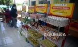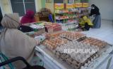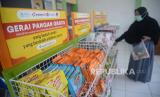 Warga mengambil bahan pangan gratis yang disediakan di Lumbung Pangan RW 08, Perumahan Griya Melati Mas, Depok, Jawa Barat, Kamis (7/6). Gerai pangan gratis tersebut diperuntukan bagi OTG, ODP, PDP dan warga membutuhkan yang bermukim di sekitar perumahan tersebut (FOTO : Prayogi/Republika)