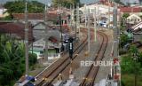 REPUBLIKA.CO.ID, YOGYAKARTA -- Pembangunan infrasktuktur jalur kereta KRL relasi Yogyakarta-Solo terus dikebut di Kawasan Stasiun Tugu, Yogyakarta, Kamis (7/5).