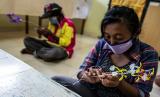 Dua orang Pemerlu Pelayanan Kesejahteraan Sosial (PPKS) mengikuti pelatihan kerajinan tangan di Balai Mulya Jaya, Jakarta, Kamis (7/5/2020). Balai Mulya Jaya di Jakarta yang merupakan salah satu Unit Pelaksana Teknis (UPT) Kementerian Sosial, sejak 30 April 2020 telah menjadi Tempat Penampungan Sementara (TPS) dan pelatihan keterampilan bagi Pemerlu Pelayanan Kesejahteraan Sosial (PPKS) dan pekerja yang mengalami Pemutusan Hubungan Kerja (PHK) karena terdampak COVID-19. (FOTO : ANTARA/Aprillio Akbar)