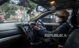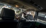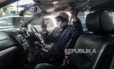 Pengemudi taksi daring, Aris Hardy Halim menunggu calon penumpang di dalam mobilnya yang telah terpasang plastik pembatas di kawasan Bendungan Hilir, Jakarta, Jumat (8/5). Pemasangan plastik pembatas antara pengemudi dengan penumpang itu untuk mencegah penyebaran virus Corona (COVID-19) dan memberikan kenyamanan serta keamanan kepada penumpang taksi daring (FOTO : Republika/Putra M. Akbar)