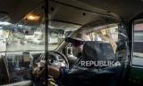 Plastik pembatas antara pengemudi dengan penumpang dipasang untuk mencegah covid-19..
