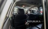 REPUBLIKA.CO.ID, JAKARTA -- Pengemudi taksi daring, Aris Hardy Halim menunggu calon penumpang di dalam mobilnya yang telah terpasang plastik pembatas di kawasan Bendungan Hilir, Jakarta, Jumat (8/5/2020).