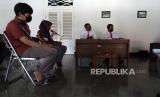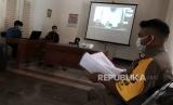 REPUBLIKA.CO.ID, BANYUMAS -- Sejumlah terdakwa kasus tindak pidana ringan pelanggaran perda penggunaan masker di Kabupaten Banyumas mengikuti proses sidang secara online di Pendopo Kecamatan Banyumas, Banyumas, Jateng, Jumat (8/5/2020).