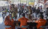REPUBLIKA.CO.ID, PEKALONGAN -- Petugas menyerahkan bantuan sosial kepada warga di Kantor Pos Pekalongan, Jawa Tengah, Jumat (8/5/2020).