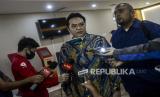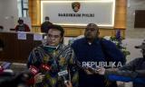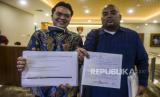 REPUBLIKA.CO.ID, JAKARTA -- Pelapor kasus dugaan perdagangan manusia David Surya (kiri) bersama Ricky Margono memperlihatkan berkas bukti kasus usai pelaporan di Jakarta, Jumat (8/5).