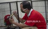 REPUBLIKA.CO.ID, JAKARTA -- Petugas memberi pakan untuk burung macaw sayap biru (Ara chloropterus) yang sedang dirawat karena sakit di Taman Burung, Taman Mini Indonesia Indah (TMII), Jakarta, Sabtu (9/5/2020).