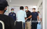 Dirut Bank Mandiri Royke Tumilaar (dua kanan), Direktur Treasury, International Banking, & SAM Darmawan Junaidi (kiri) dan RCEO Bank Mandiri Jakarta 3 Anton Zulkarnain (kanan) menyerahkan bantuan bahan pokok Idul Fitri kepada anggota masyarakat terdampak Covid-19 di Jakarta, Ahad (10/5) (FOTO : Tahta Aidilla/ Republika)