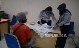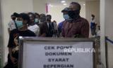 REPUBLIKA.CO.ID, JAKARTA -- Calon penumpang yang akan berpergian menggunakan Bus AKAP (Antar Kota Antar Provinsi) mengantre untuk diperiksa dokumennya di Terminal Pulogebang, Jakarta, Ahad (10/5).