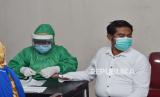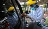 Petugas medis mengambil sampel darah pengguna kendaraan saat tes diagnostik cepat (rapid test) COVID-19 dengan sistem (FOTO : ANTARA FOTO)
