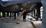 REPUBLIKA.CO.ID, SURABAYA -- Pekerja menyelesaikan pembangunan tenda Rumah Sakit Darurat COVID-19 di kawasan Pusat Penelitian dan Pengembangan (Puslitbang) Humaniora di Surabaya, Jawa Timur, Senin (11/5/2020).