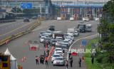 Sejumlah kendaraan antre saat pemeriksaan kepatuhan penerapan Pembatasan Sosial Berskala Besar (PSBB) di pintu keluar gerbang tol Jagorawi, Kota Bogor, Jawa Barat, Senin (11/5/2020). Satlantas Polresta Bogor Kota mencatat sedikitnya 1 (FOTO : Antara/Arif Firmansyah)