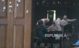 Personel Gugus Tugas Penanganan COVID-19 Sleman melakukan rapat koordinasi jelang tes diagnostik cepat atau rapid test massal di GOR Pangukan, Sleman, D.I Yogyakarta, Senin (11/5/2020) (FOTO : ANTARA/Andreas Fitri Atmoko)