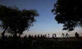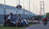 Warga berkerumun pada hari kedua pemberlakuan Pembatasan Sosial Berskala Besar (PSBB) tahap II di sekitar kawasan Jembatan Suramadu, Surabaya, Jawa Timur, Rabu (13/5/2020). Pada pelaksanaan PSBB tahap II yang berlaku mulai 12 Mei 2020 di Surabaya Raya (Surabaya, Gresik dan Sidoarjo) masih ditemukan kerumunan warga di sejumlah tempat umum meski pemerintah telah mempertegas sanksi berupa tidak dapat memperpanjang Surat Izin Mengemudi (SIM) dan penangguhan pengajuan Surat Keterangan Catatan Kepolisian (SKCK) selama enam bulan (FOTO : Antara/Moch Asim )