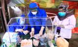 Dua petugas dari Dinas Kesehatan Provinsi Kalbar melakukan test diagnostik cepat atau rapid test COVID-19 terhadap warga di kawasan Pasar Seruni di Jalan Panglima Aim, Pontianak, Kalimantan Barat, Rabu (13/5/2020). Dari hasil rapid test yang digelar Dinas Kesehatan Provinsi Kalbar bersama Kesdam XII/Tanjungpura dan dijalani 158 warga setempat secara sukarela tersebut ditemukan satu warga yang reaktif (FOTO : Antara/Jessica Helena Wuysang)