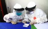 Dua petugas medis memeriksa hasil dari sejumlah alat test diagnostik cepat atau rapid test COVID-19 di kawasan Pasar Seruni di Jalan Panglima Aim, Pontianak, Kalimantan Barat, Rabu (13/5/2020). Dari hasil rapid test yang digelar Dinas Kesehatan Provinsi Kalbar bersama Kesdam XII/Tanjungpura dan dijalani 158 warga setempat secara sukarela tersebut ditemukan satu warga yang reaktif (FOTO : Antara/Jessica Helena Wuysang)