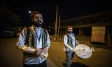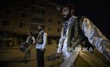Solois musik sufi Eren Coskun (kiri) bersama pemain drum Haydar Kocadere (kanan) memainkan musik sufi untuk membangunkan orang-orang untuk sahur di bulan suci Ramadhan, Ankara, Turki (FOTO : Anadolu / Esra Hacioglu)