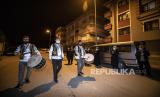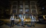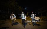 Solois musik sufi Eren Coskun (kiri), pemain drum Haydar Kocadere (kanan) dan Emir Cosan (tengah) memainkan musik sufi untuk membangunkan orang-orang untuk sahur di bulan suci Ramadhan, Ankara, Turki (FOTO : Anadolu / Esra Hacioglu)