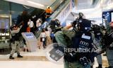 Polisi anti huru-hara membubarkan pengunjuk rasa anti-pemerintah selama demonstrasi di dalam pusat perbelanjaan di Hong Kong, Ahad (10/5). Sebuah gerakan pro-demokrasi yang melumpuhkan Hong Kong selama berbulan-bulan tahun lalu telah menunjukkan tanda-tanda kebangkitan kembali dalam beberapa pekan terakhir ketika ancaman virus corona mereda (FOTO : REUTERS / Tyrone Siu)