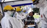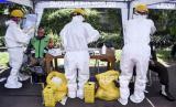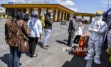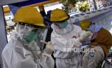 Petugas medis dari Dinas Kesehatan Kota Bandung bersiap untuk melakukan test swab Covid-19 di Pos Pemeriksaan Pembatasan Sosial Berskala Besar (PSBB), Gerbang Tol Pasteur, Kota Bandung, Kamis (14/5). Test swab yang dilakukan di tujuh titik pos pemeriksaan Pembatasan Sosial Berskala Besar (PSBB) Kota Bandung tersebut bertujuan untuk mendeteksi dan mencegah penyebaran covid-19 di kawasan tersebut (FOTO : ABDAN SYAKURA/REPUBLIKA)