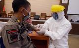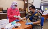 Sebanyak 285 anggota Satpol PP Kota Depok mengikuti pemeriksaan Rapid Test Covid-19 yang berlangsung di aula lantai 10 Gedung Dibaleka II, Balai Kota Depok, Kamis (14/5). (FOTO : Republika/Rusdy Nurdiansyah)