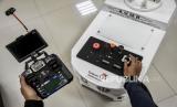 Seorang anggota tim Telkom University menguji coba Autonomous UVC Mobile Robot (AUMR) di Laboratorium Bandung Techno Park Telkom University, Kabupaten Bandung, Kamis (14/5). Telkom University bekerja sama dengan Balai Pengembangan Instrumentasi LIPI berhasil membuat robot Autonomous UVC Mobile Robot (AUMR) (FOTO : ABDAN SYAKURA/REPUBLIKA)