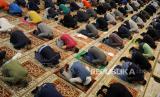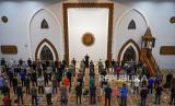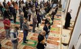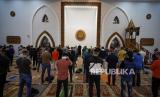 Umat muslim melaksanakan salat tarawih di Masjid Istiqlal, Sarajevo, Bosnia Herzegovina, Rabu (13/5). Masjid-masjid dibuka kembali setelah wabah virus corona mereda dan pembatasan sosial dilonggarkan (FOTO : Anadolu / Samir Jordamovic)