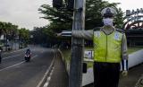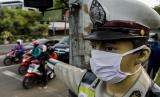 Patung polisi lalu lintas yang terletak di ruas jalan dipasangkan masker di Bandung, Jawa barat, Jumat (15/5/2020). Patung yang menjadi salah satu simbol ketertiban berlalu lintas Kota Bandung tersebut dipasangkan masker guna meningkatkan kesadaran masyarakat untuk wajib menggunakan masker di masa pandemi COVID-19. (FOTO : ANTARA/Novrian Arbi)