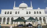 REPUBLIKA.CO.ID, JAKARTA -- Petugas Amil Zakat menunggu warga yang akan membayar zakat fitrah di Masjid Agung Al-Azhar, Jakarta, Jumat (15/5/2020).