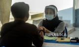 Petugas melayani warga yang akan menyalurkan zakat fitrah di Masjid Agung Al-Azhar, Jakarta, Sabtu (16/5). Masjid Agung Al-Azhar membuka layanan pembayaran zakat fitrah melalui sistem drive thru selama pandemi virus Corona dengan memberlakukan protokol kesehatan dan keselamatan (FOTO : Republika/Putra M. Akbar)