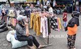 Calon pembeli memilih pakaian di salah satu lapak di Pasar Kaget di kawasan Monumen Perjuangan Rakyat, Jalan Japati, Kota Bandung, Ahad (17/5). Meski sudah diterapkan Pembatasan Sosial Berskala Besar (PSBB) Provinsi Jawa Barat sejak sepekan terakhir, namun menjelang lebaran pasar kaget mulai ramai dikunjungi warga yang ingin membeli kebutuhan pakaian dan perlengkapan lainnya untuk perayaan Idul Fitri 1441 H. (FOTO : ABDAN SYAKURA/REPUBLIKA)