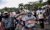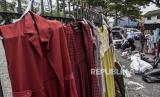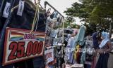 REPUBLIKA.CO.ID, BANDUNG -- Di tengah Pembatasan Sosial Berskala Besar (PSBB) di Provinsi Jawa Barat, sejumlah pedagang pakaian tampak menggelar lapaknya di Pasar Kaget di kawasan Monumen Perjuangan Rakyat (Monju), Jalan Japati, Kota Bandung, Ahad (17/5). Menurut penuturan pedagang, sejak sepekan terakhir pasar kaget itu mulai ramai dikunjungi warga yang ingin membeli kebutuhan pakaian dan perlengkapan lainnya untuk perayaan Idul Fitri 1441 H.