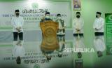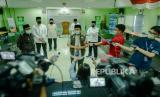 Ketua Gugus Tugas Percepatan Penanganan Covid-19 Doni Monardo (kiri) Wakil Sekjen Majelis Ulama Indonesia (MUI) Nadjamuddin Ramly (ketiga kanan) Juru Bicara Wakil Presiden RI Masduki Baidlowi (kedua kiri) menyampaikan konferensi pers terkait kunjungan Ketua Gugus Tugas Percepatan Penanganan Covid-19 di kantor MUI, Jakarta, Ahad (17/5). Dalam kunjungan tersebut membahas tentang rencana kegiatan gerakan moral bangsa sebagai implementasi dari 4 sehat 5 sempurna dengan menerapkan protokol covid-19 kepada masyarakat agar menerapkan pola hidup sehat. (FOTO : Republika/Thoudy Badai)
