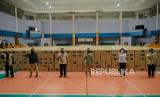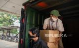 REPUBLIKA.CO.ID, JAKARTA -- Relawan Gugus Tugas Percepatan Penanganan Covid-19 mendistribusikan paket bantuan di GOR Senen, Jakarta, Senin (18/5).